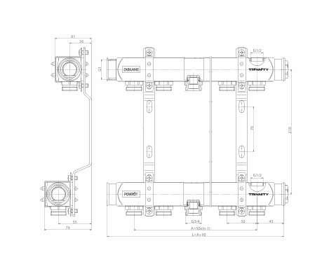 ROZDZIELACZ INOX K2 Z NYPLAMI TRINNITY