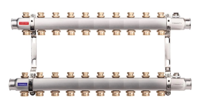 ROZDZIELACZ INOX K30 10 SEKCJI Z ZAWORAMI ODCINAJĄCYMI DO C.O. TRINNITY