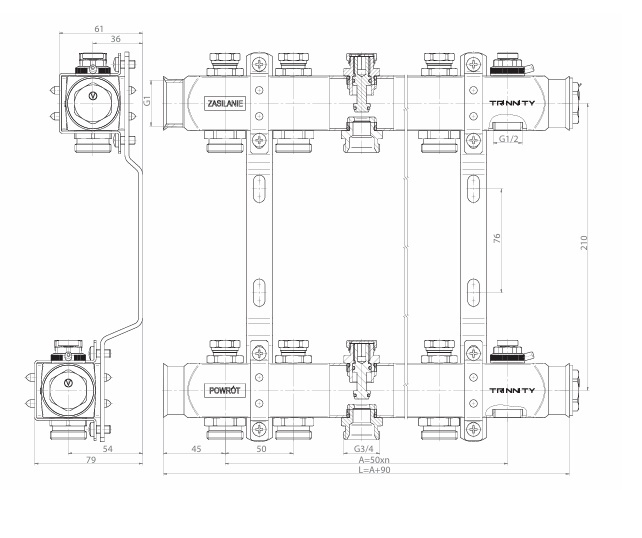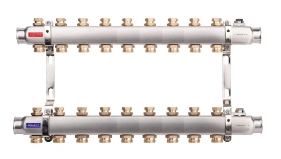 ROZDZIELACZ INOX K30 9 SEKCJI Z ZAWORAMI ODCINAJĄCYMI DO C.O. TRINNITY